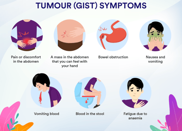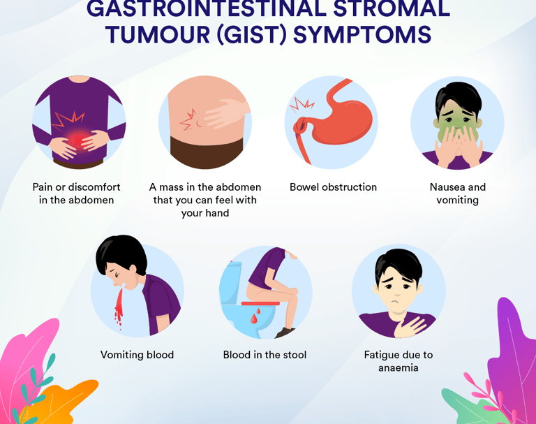 Os sintomas de um GIST podem ser muito variados e, muitas vezes, não específicos, o que dificulta o diagnóstico precoce. Alguns dos principais sintomas incluem:
