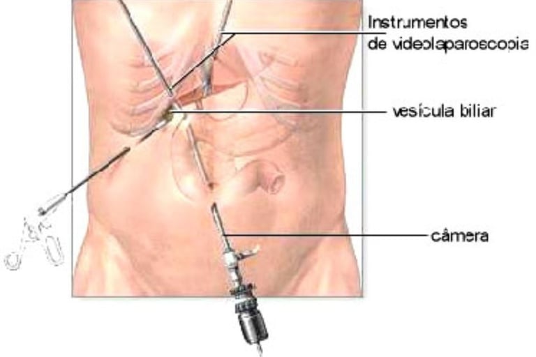 Durante a cirurgia laparoscópica, pequenas incisões são feitas no abdômen, através das quais um tubo fino com uma câmera e instrumentos cirúrgicos são inseridos para remover a vesícula biliar. Este método oferece uma visão clara e precisa do órgão, permitindo ao cirurgião realizar o procedimento com segurança e eficácia.